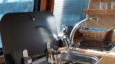 * Cam kapaklı krom evye ve musluğu